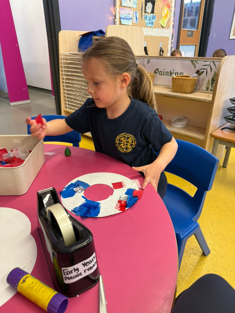 We talked about the importance of VE Day and how brave soldiers fought for our country. We made wreaths in Union Jack colours and made our own Bravery medals.