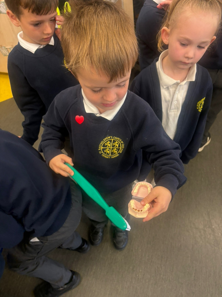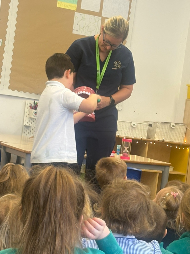 Isaac's Mummy came in to talk to us about her work as a Dentist. She told us about how important it is to keep your teeth clean by brushing away the 'Sugar Bugs' regularly.