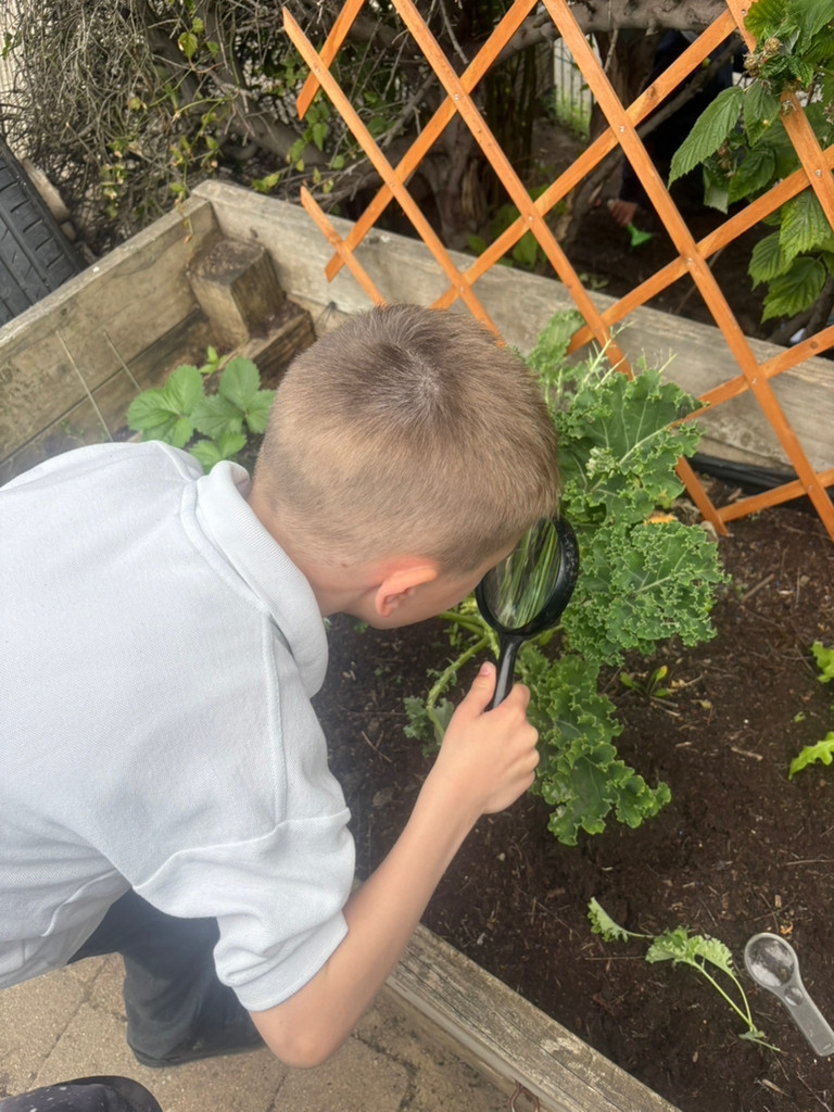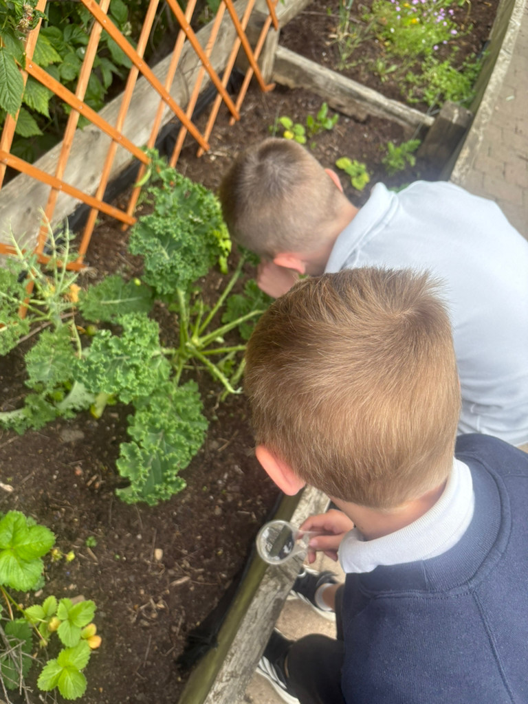 We have been helping to tidy up our garden. Reception were fascinated by the caterpillars we discovered on our vegetable plants!
