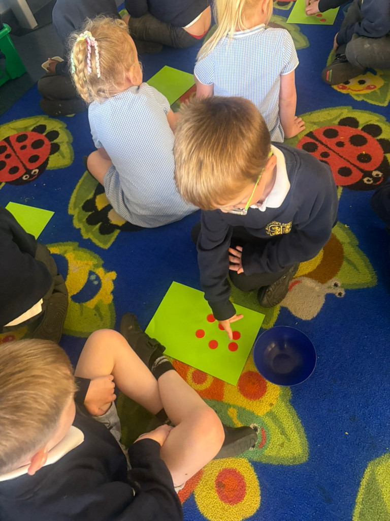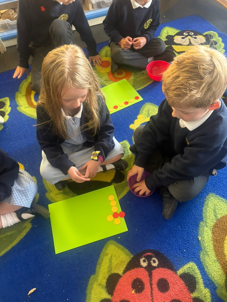 In Maths, we have been working together to create our own arrangements of 6. We found groups of 2, groups of 3 and made 'Even' and 'Odd' groups.