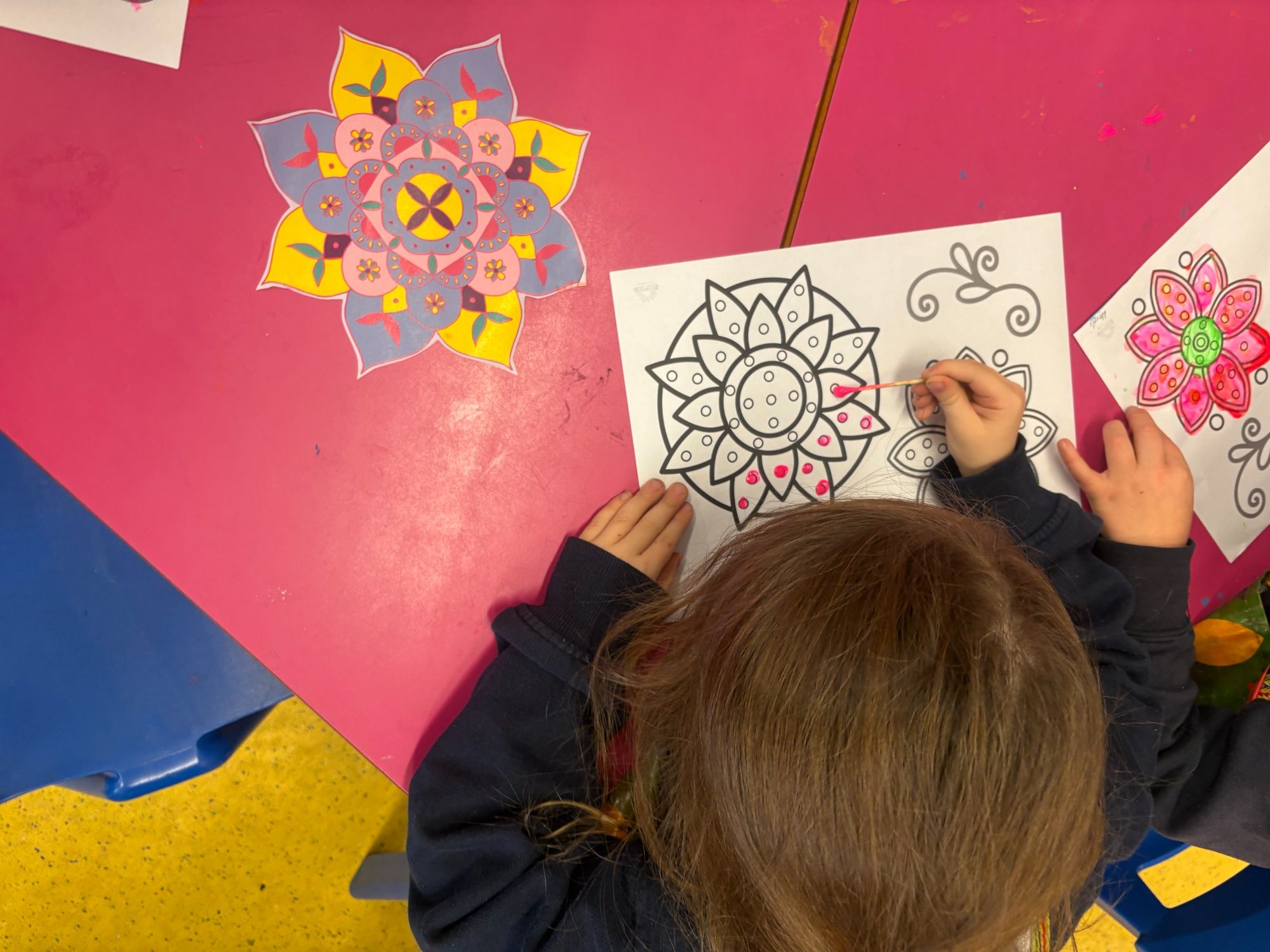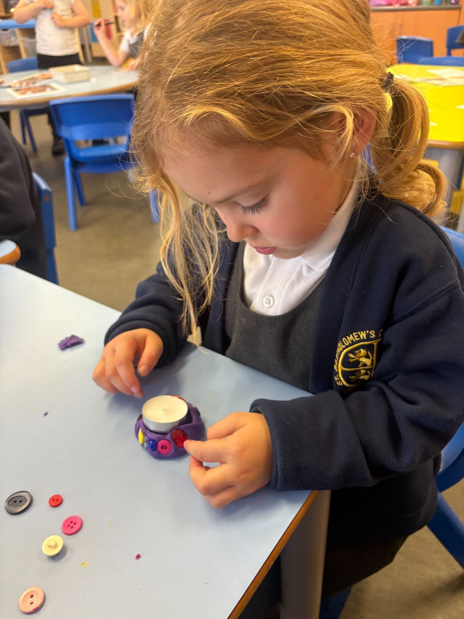 Reception explored the Hindu festival of light. Through stories, art and sensory play we learnt how families prepare for Diwali by lighting lamps (diyas), sharing gifts and cleaning their homes.