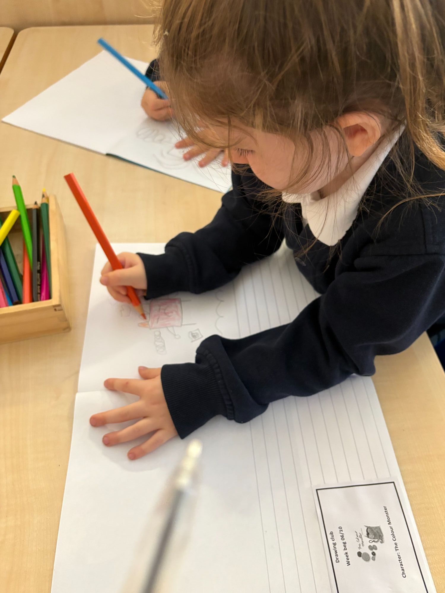 We used The Colour Monster by Anna Llenas to explore our feelings. In drawing club, we thought about our own colour monsters and used magic code letters to bring them to life!