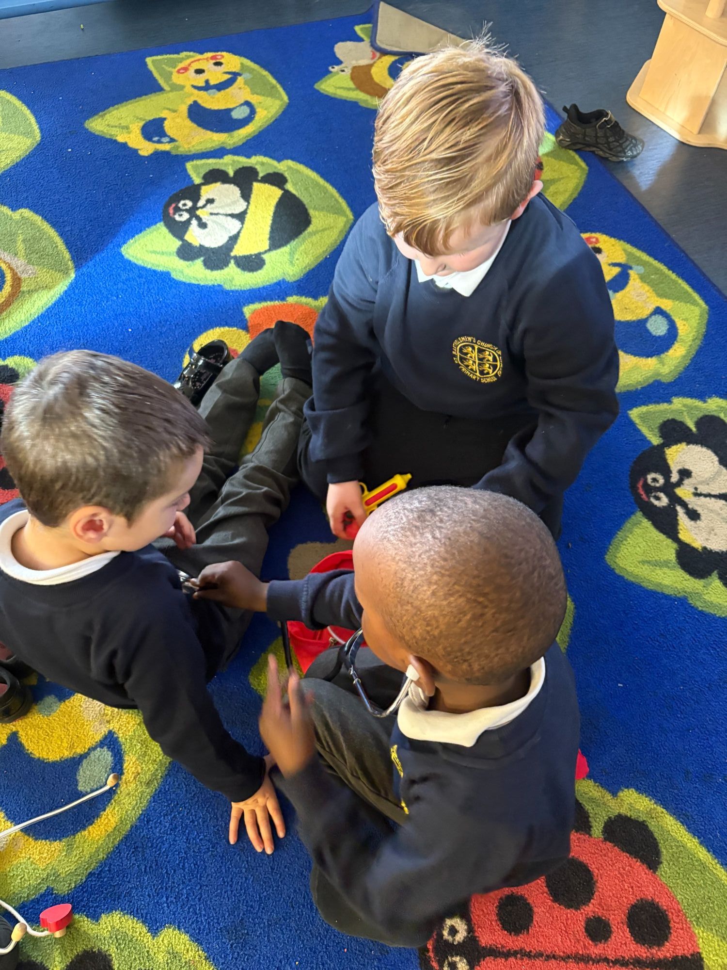 We have talked about our bodies and how we can stay healthy. We really enjoyed using our doctors kits to listen to our heart beat!