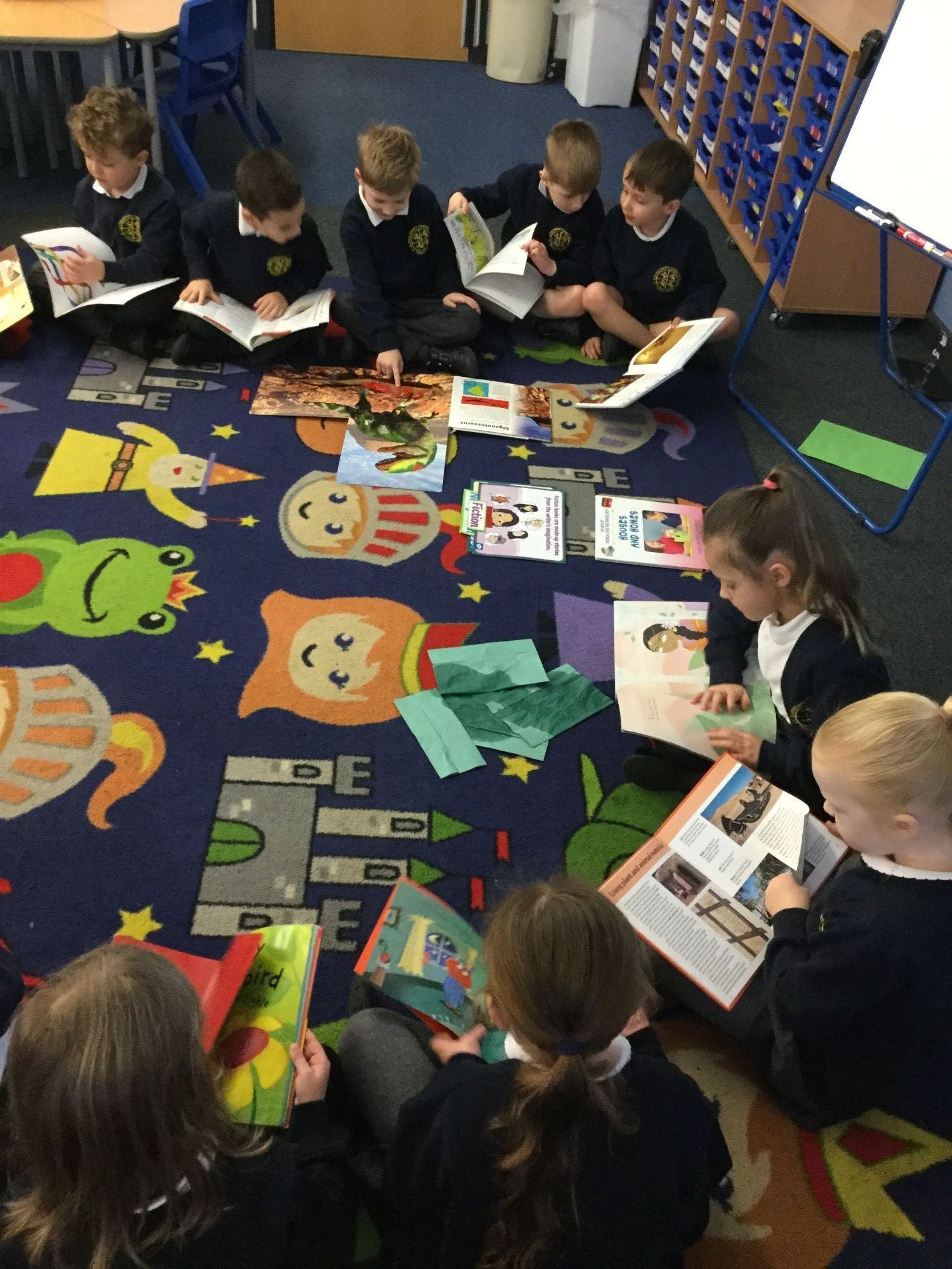 We have been looking at fiction and non-fiction books during our English lessons and talking about the features of each. We know non-fiction books are factual and have a contents, glossary and index page, but fiction books are made up stories. We will be using non-fiction books next week to research and investigate mini-beasts before creating our own information booklet.