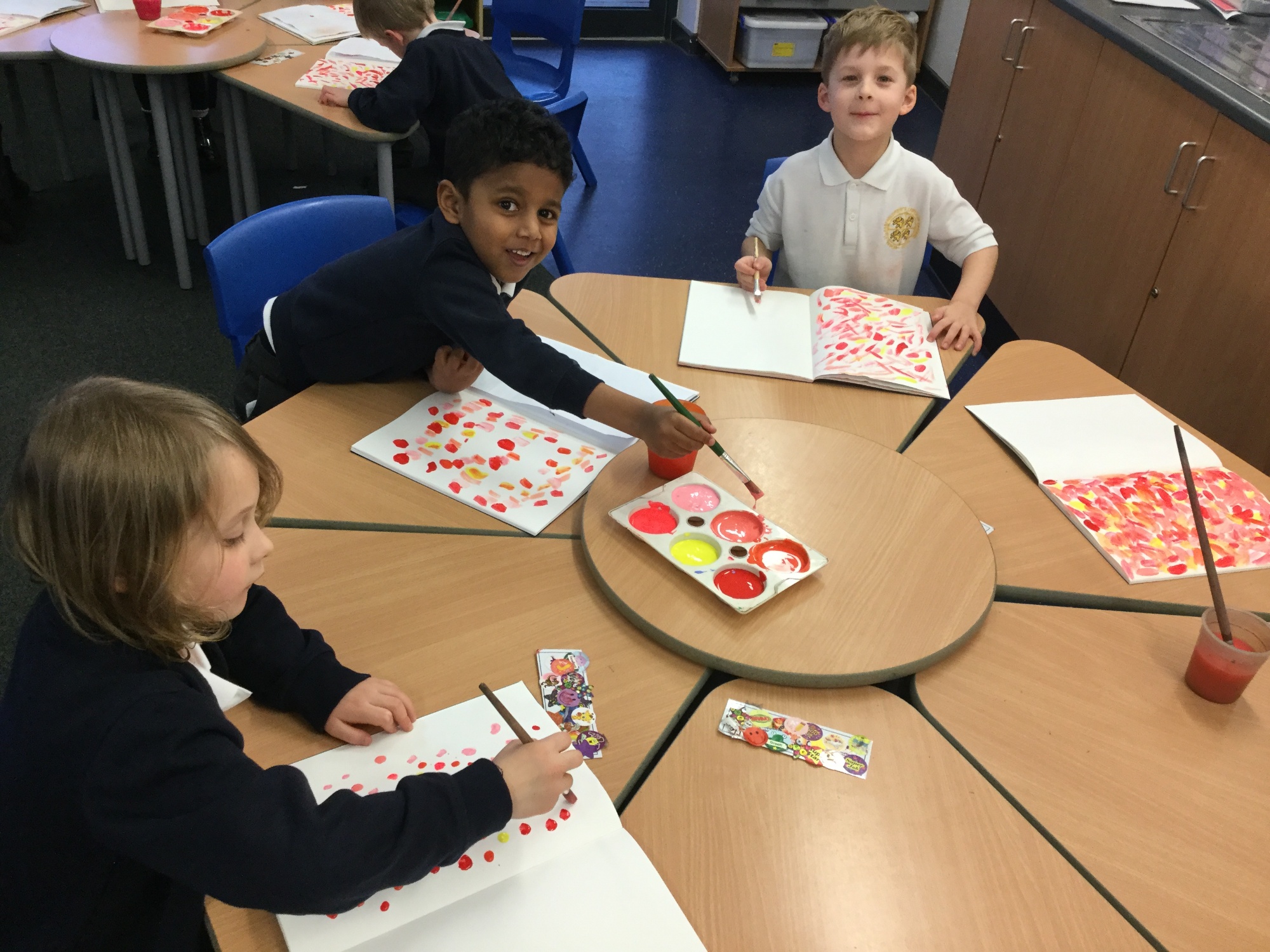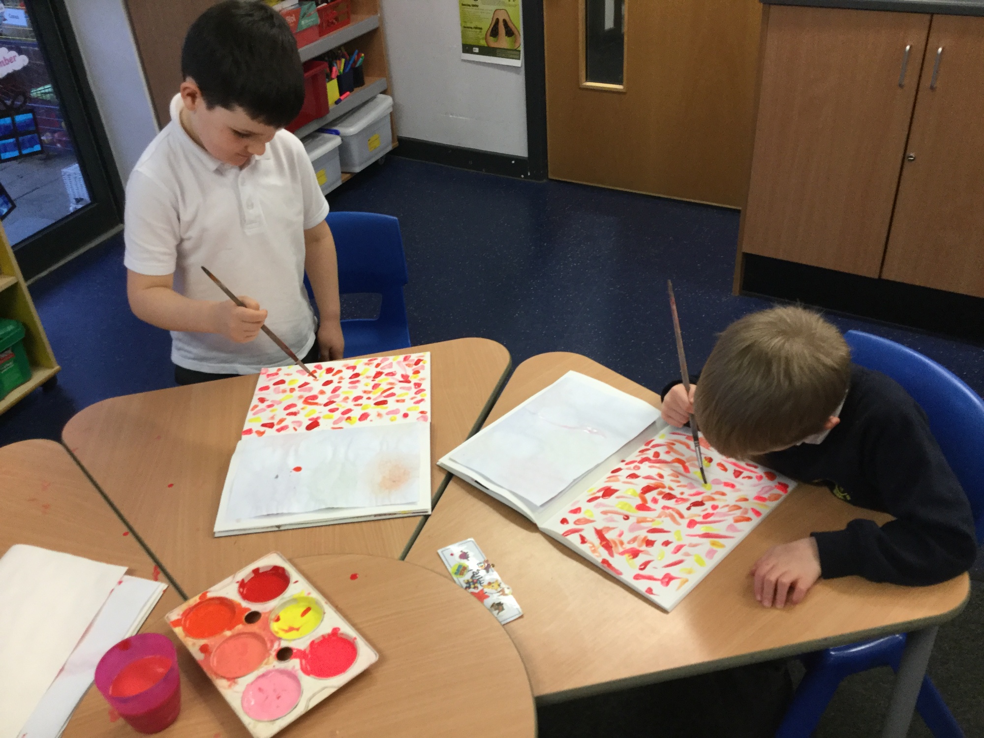 We have been looking at the artwork of Jim Dine. He often uses bold colours and shapes to create different Pop Art style pieces. This week, the children began their own piece of art in the style of Jim Dine. They could choose to use a pallet of warm or cool colours to create their background of different coloured brush strokes. Next week they will select different shapes to cut out and stick onto their artwork.