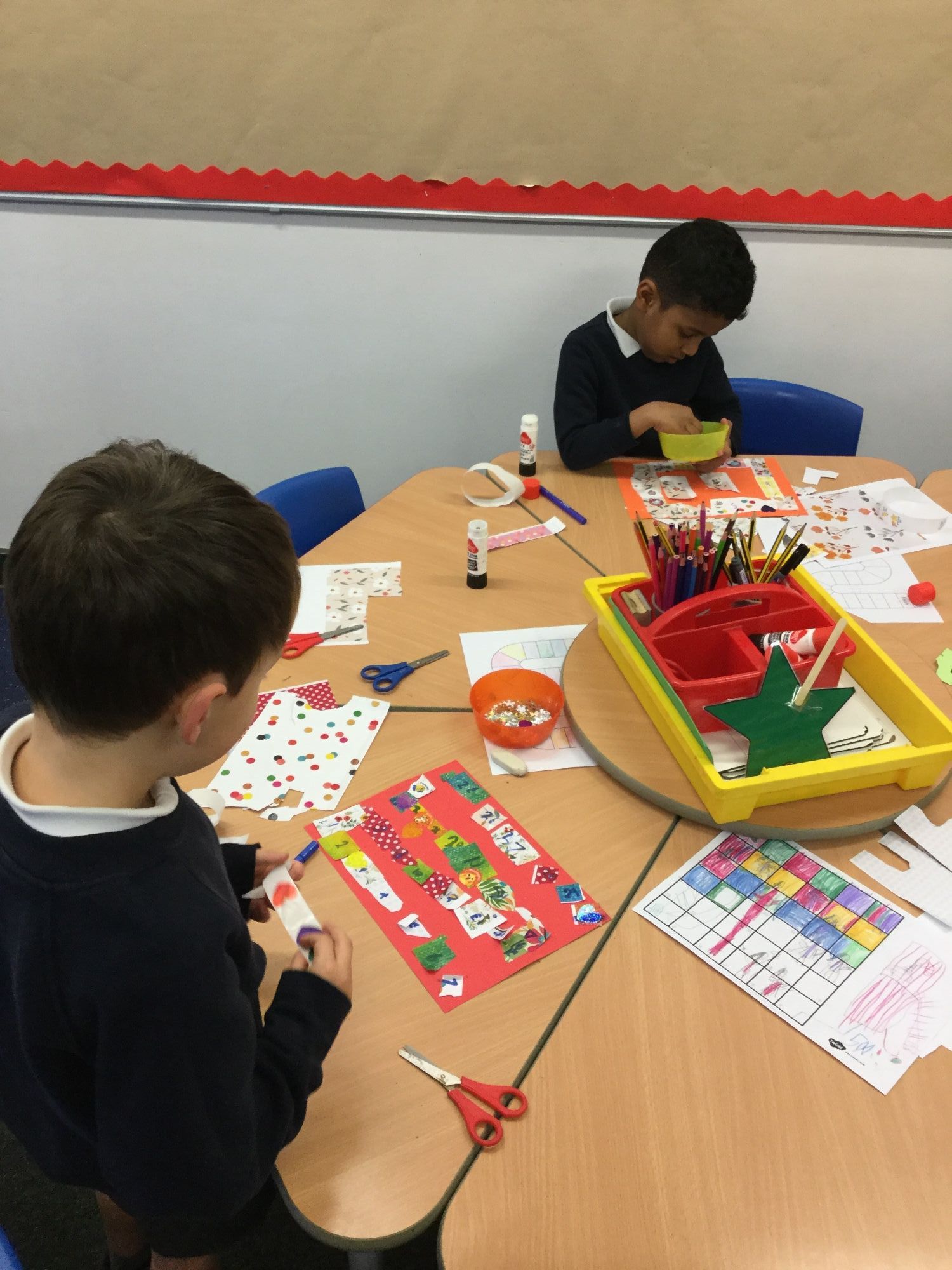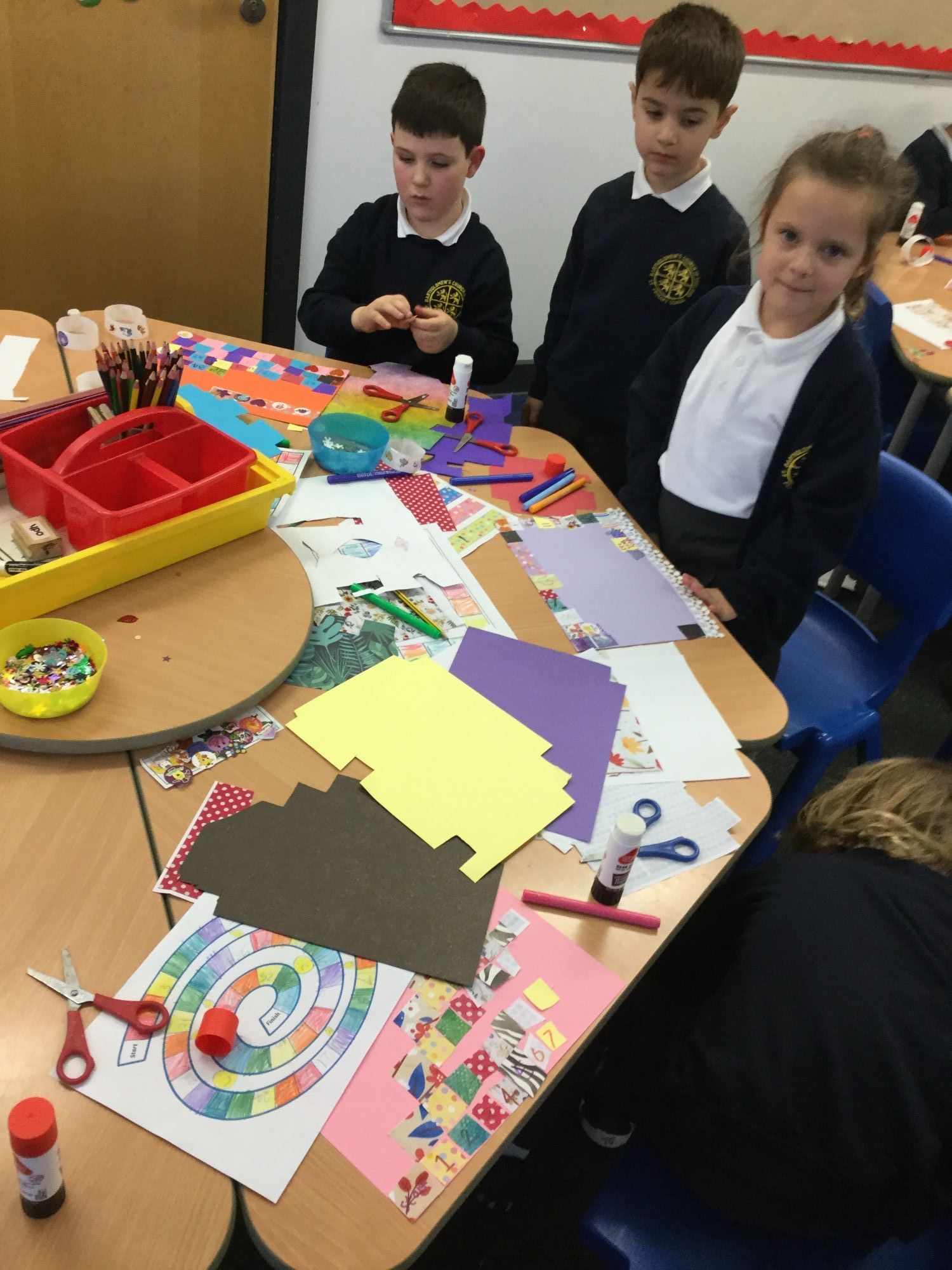 The class have been creating their own board games this week. They had lots of fun using different materials and colours to bring their designs to life.