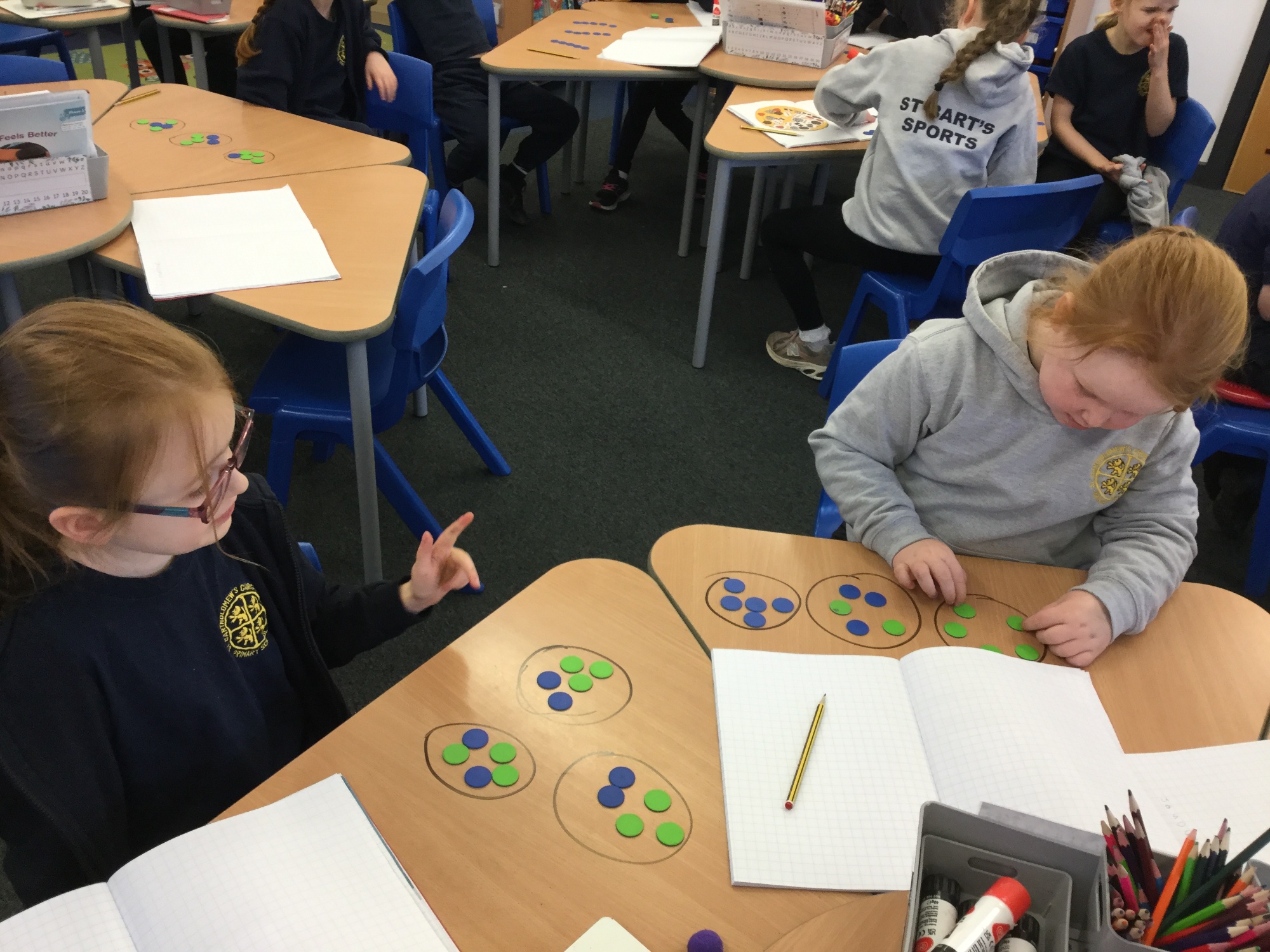 This week in maths we have been working on finding one more and one less. We have also been adding one-digit numbers together by rolling two dice and counting the dots on both.