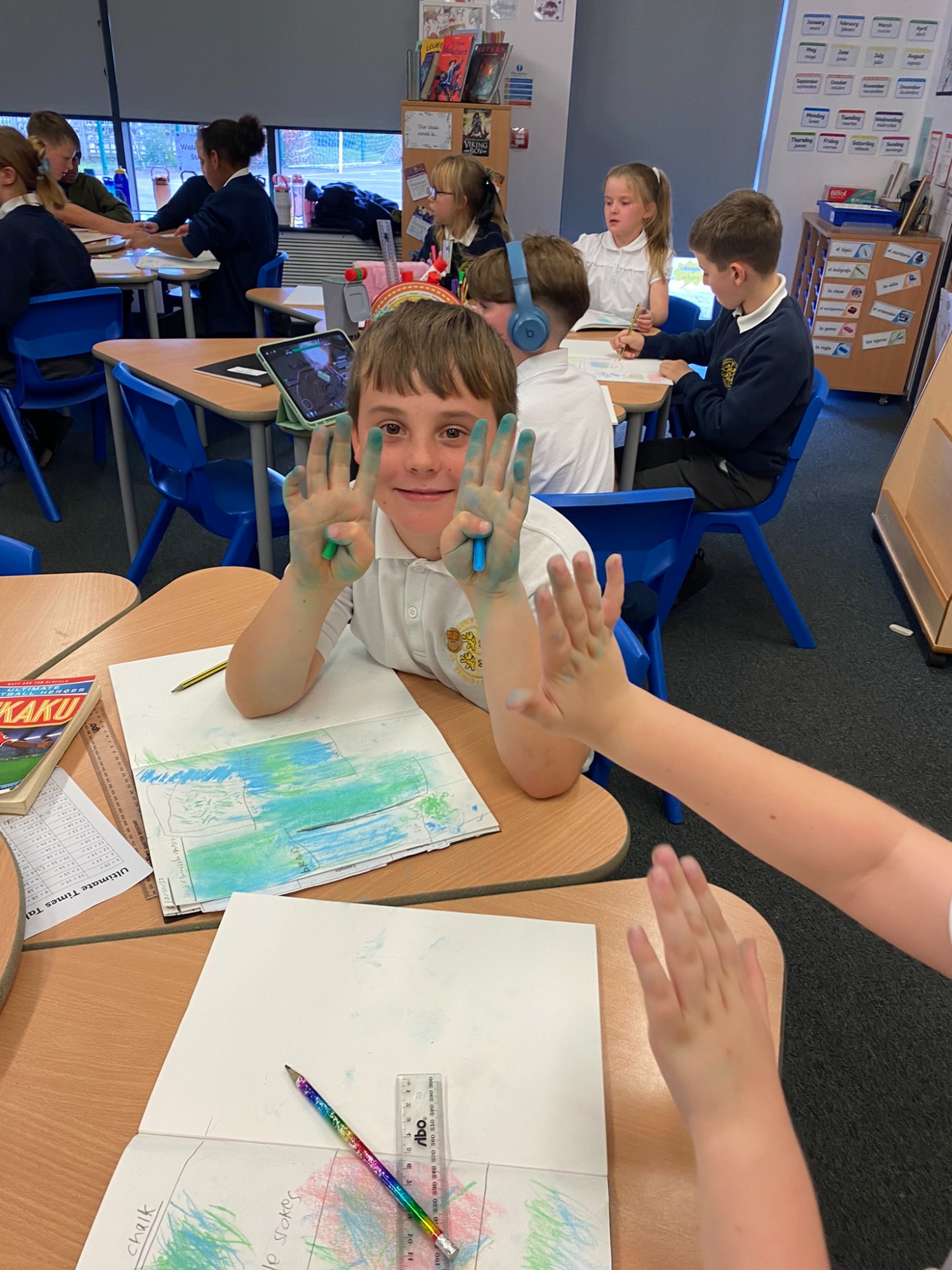 Well, what a fantastic start to the year we have had in Class 5! In amongst catching up with friends, sharing our news and getting used to the classroom, we have brought a brilliant attitude to our learning. We have wowed Miss Parker with our knowledge of Roman Numerals, created some brilliant stories and even carried out a Science investigation where we created some excellent scatter graphs to find a relationship between the size of hands and number of sweets they can grab. We've hit the ground running and there is no stopping us!