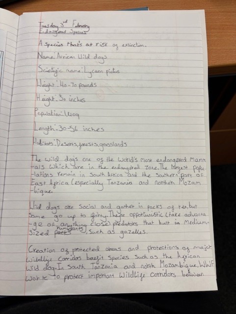 This week, we have been learning about endangered animals. I have been enjoying learning facts about them. Some children have been researching at home!